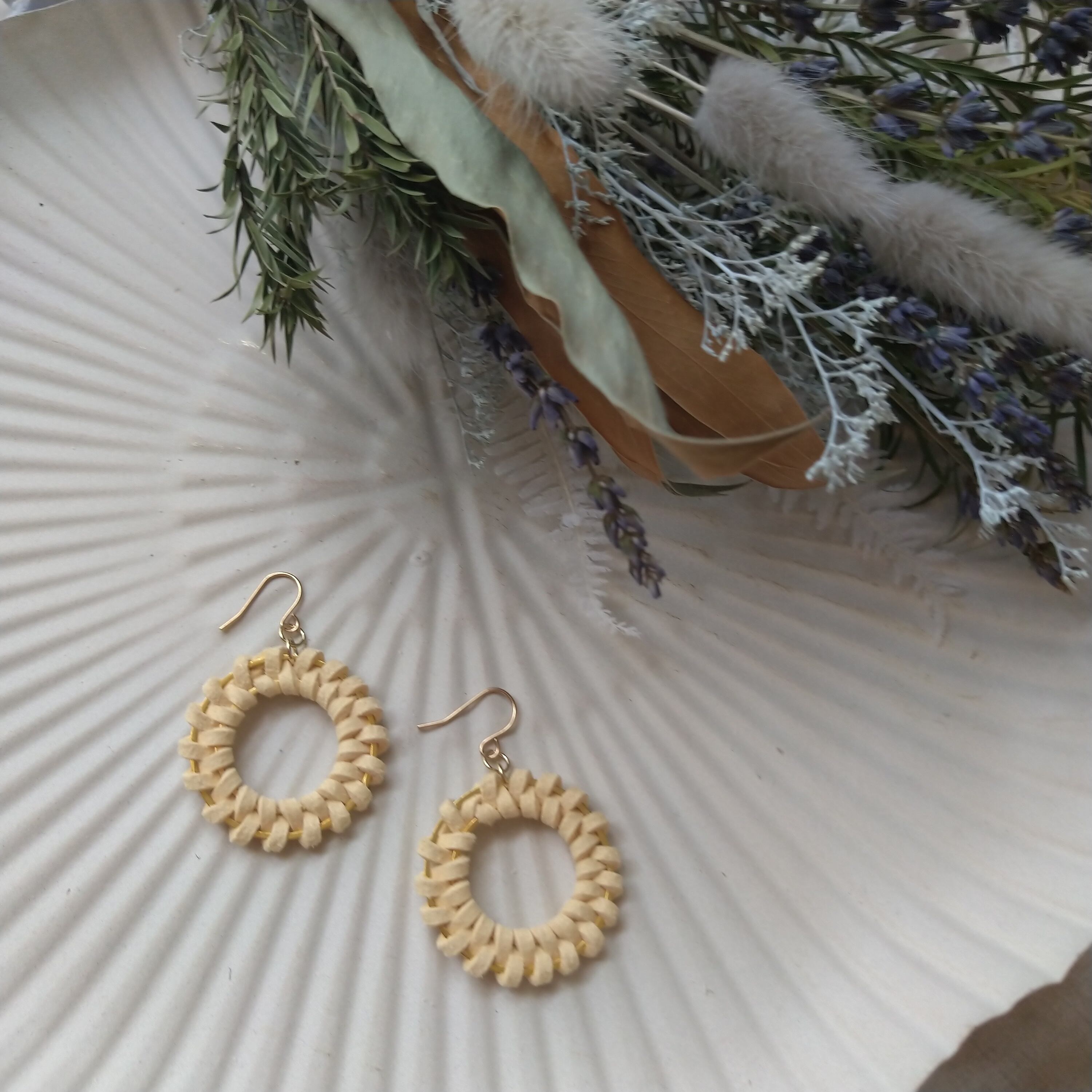 スエード調の編み込みフープピアスです。