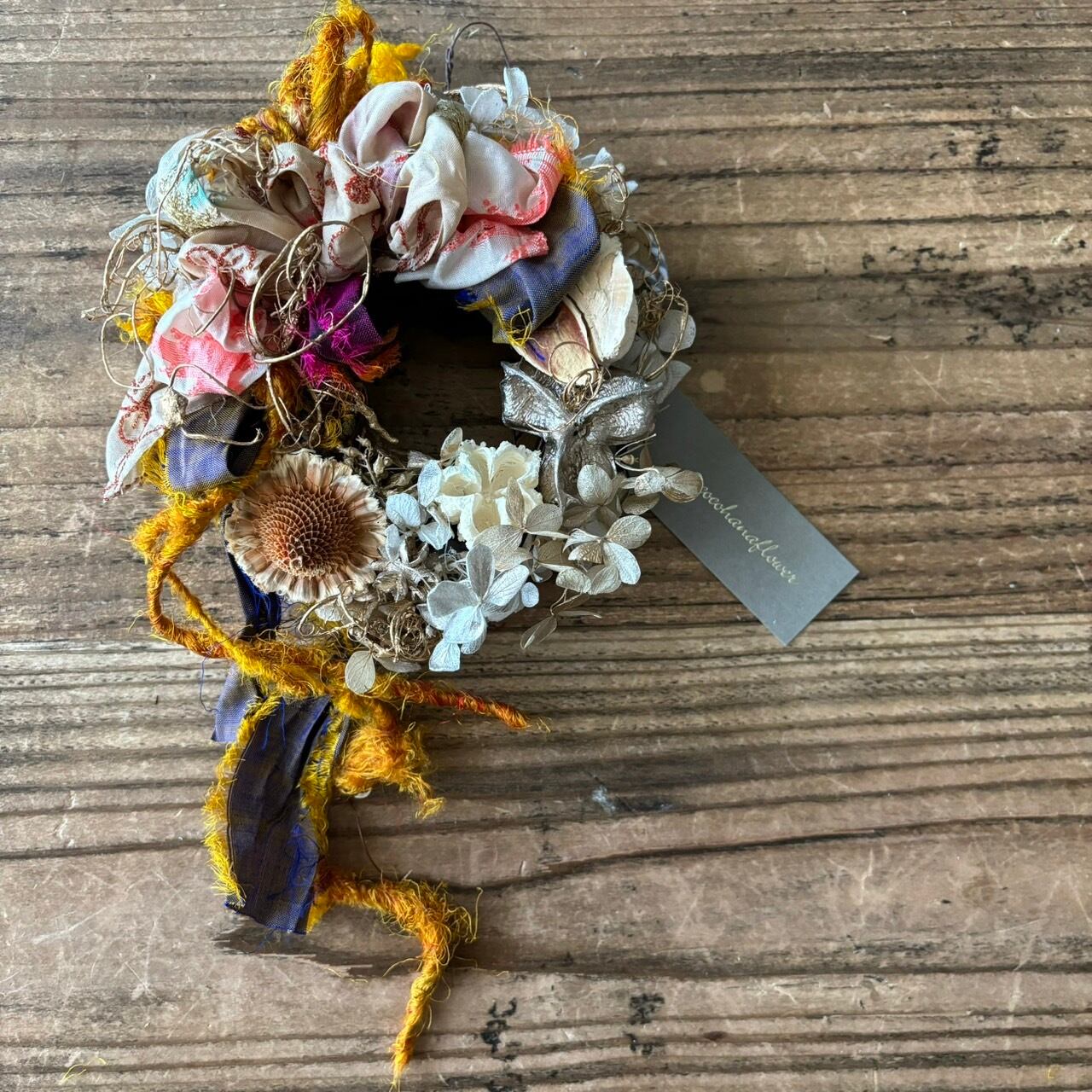 インドリボンと木の実などをミックスしてしあげました。どの花材も持ちの良いものを使っております。